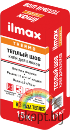 НазначениеКлей для блоков ilmax thermo Теплый шов предназначен для укладки керамзитобетонных и пенобетонных блоков, поризованных (пустотелых) керамических блоков, блоков из ячеистого бетона, в том числе газосиликатных, и других штучных стеновых материалов, устранения дефектов (неровности, выбоины, сколы) в них. Теплоизоляционные свойства клея ilmax thermo Теплый шов позволяют построить стену без «мостиков холода» и снизить потери тепла.