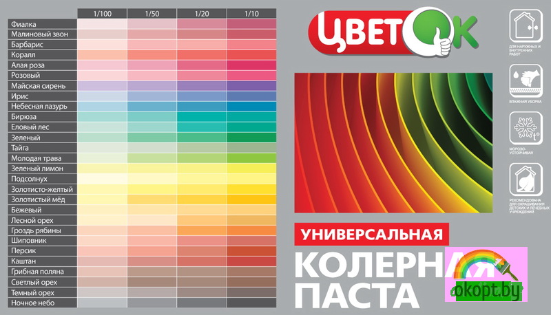 - 1-10% от массы краски; 100 г колера на 1-10 кг краски