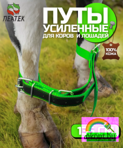 Эти прочные и надежные путы предназначены для эффективного сдерживания крупного рогатого скота, лошадей и других животных на пастбищах, обеспечивая при этом их комфорт и благополучие. Изготовлены из высококачественного полипропилена и прочной фурнитуры. Путы прочные на растягивание. Есть кожаное усиление. Ремни регилируются по длине, что позволит настроить путы под размер и вес животного, обеспечивая идеальную посадку. Быстро и легко надеваются и снимаются. Подходят для различных видов животных, включая крупный рогатый скот, лошадей, коз и овец.
